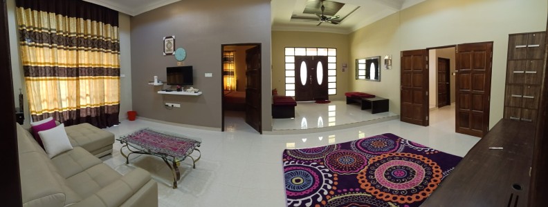 - Ruang tamu dengan sofa L shape dan LCD TV ada disediakan.