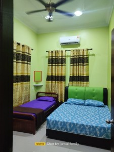 - Bilik 2 – Queen size + single bed dilengkapi dgn penghawa dingin dan kipas siling.